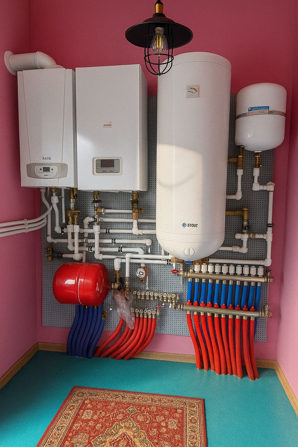 Установка котлов, подключение инженерных систем, обвязка оборудования.